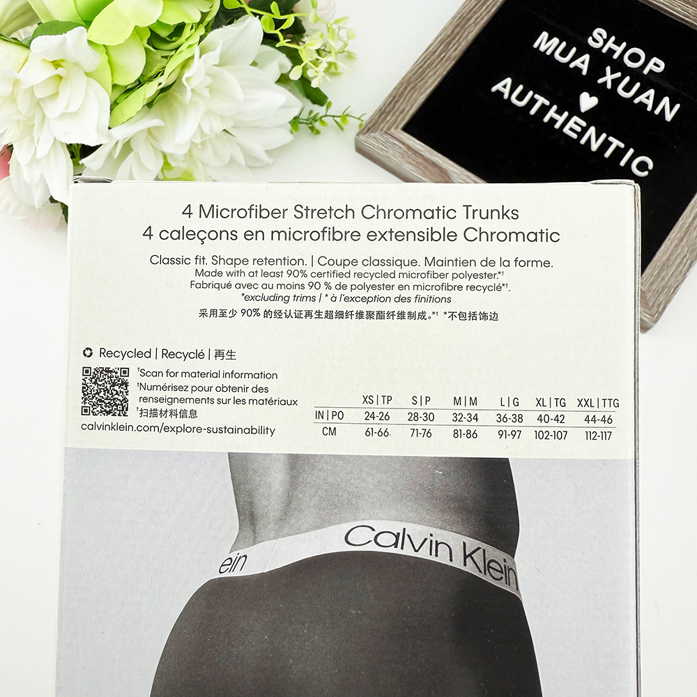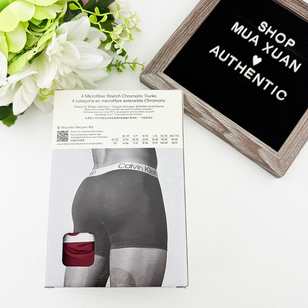 Calvin Klein Trunk (quần đùi ngắn) với thiết kế lưng quần co giãn vừa chạm phần hông, giảm thiểu việc quần bị cuộn lên hay bó chặt gây khó chịu.