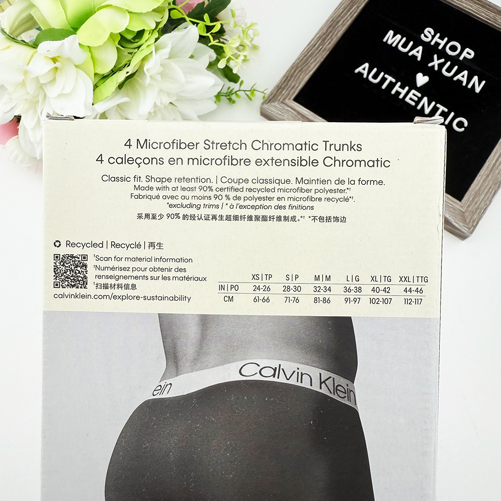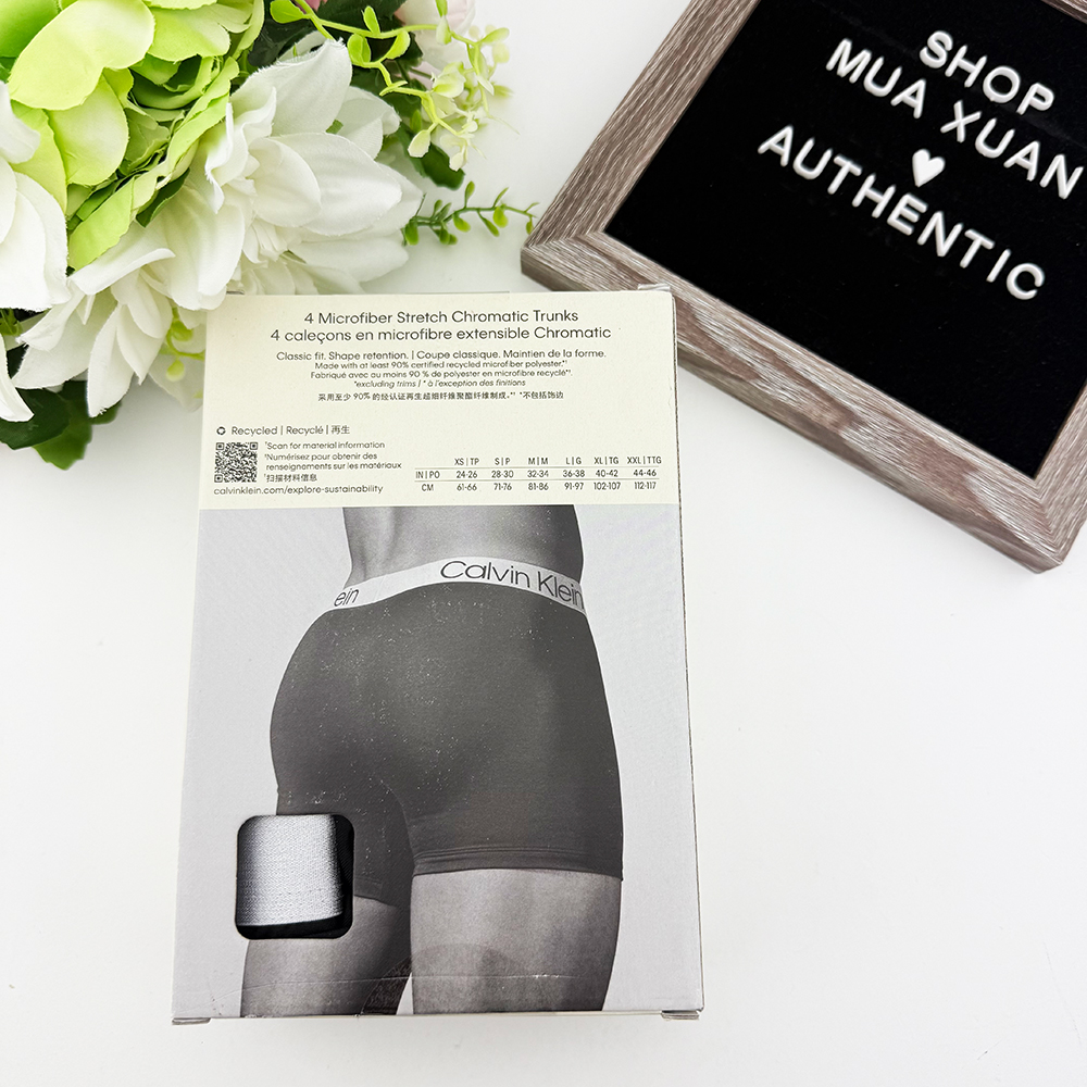 Calvin Klein Trunk (quần đùi ngắn) với thiết kế lưng quần co giãn vừa chạm phần hông, giảm thiểu việc quần bị cuộn lên hay bó chặt gây khó chịu.
