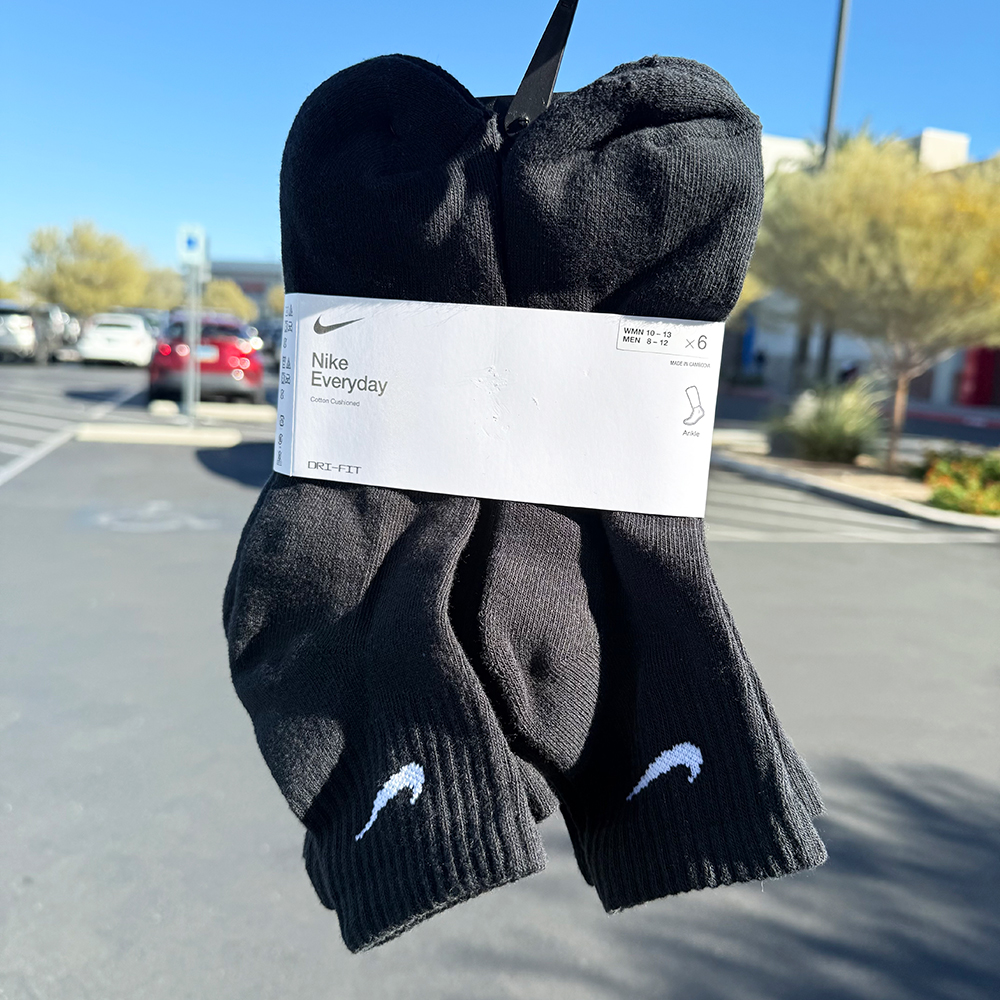 Chất liệu 70% Cotton, 28% Polyester và 2% spandex mềm mại, kết hợp công nghệ Dri-FIT giúp giữ cho bàn chân luôn khô ráo và thoải mái.