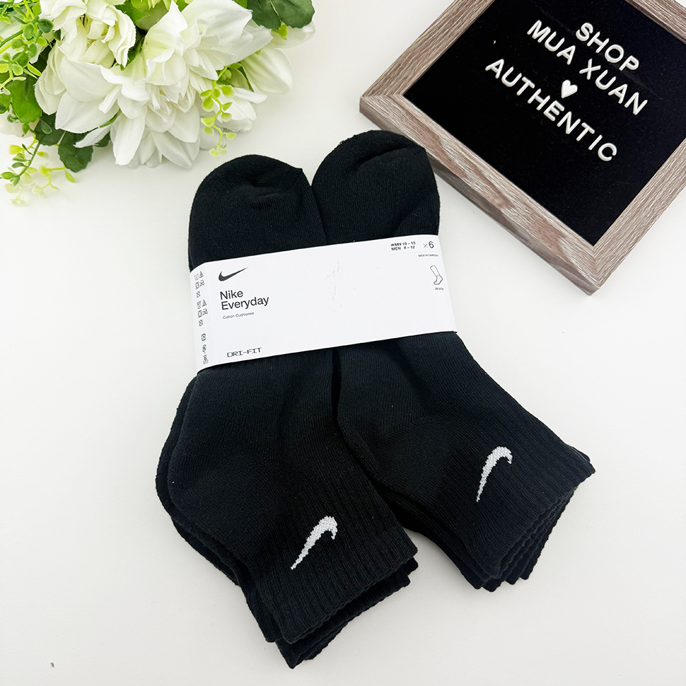 Set 6 đôi vớ Nike Everyday kiểu dáng Ankle Socks cổ cao 1/4, che phủ mắt cá chân, ôm sát theo từng chuyển động của đôi chân.