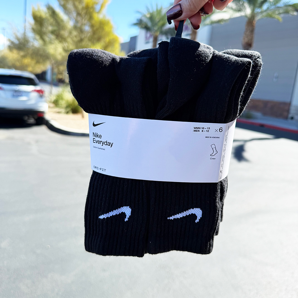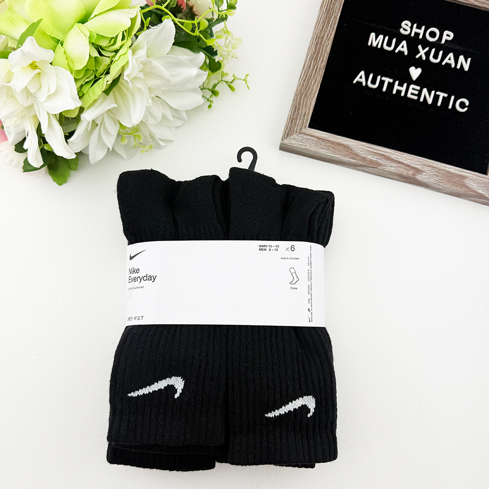 Set 6 đôi vớ Nike Everyday kiểu dáng Crew Socks cổ cao che phủ mắt cá chân và bắp chân dưới, ôm sát theo từng chuyển động của đôi chân.