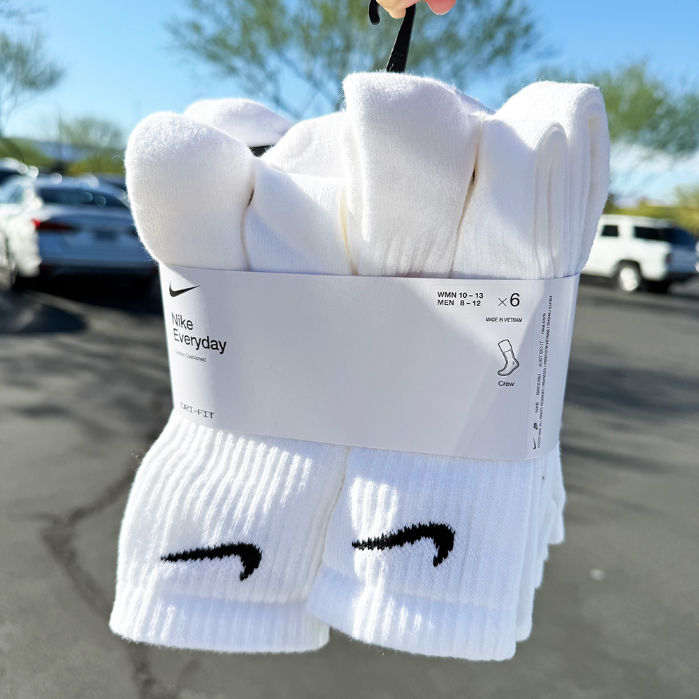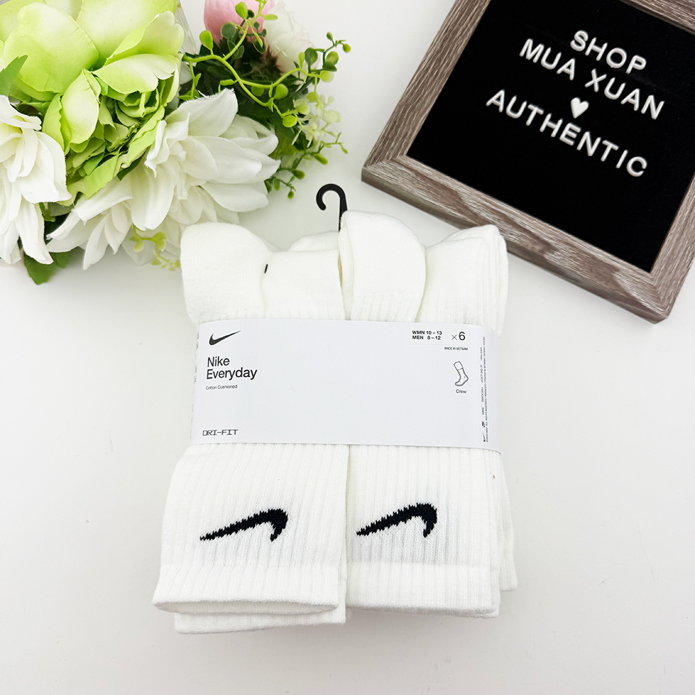 Set 6 đôi vớ Nike Everyday kiểu dáng Crew Socks cổ cao che phủ mắt cá chân và bắp chân dưới, ôm sát theo từng chuyển động của đôi chân.
