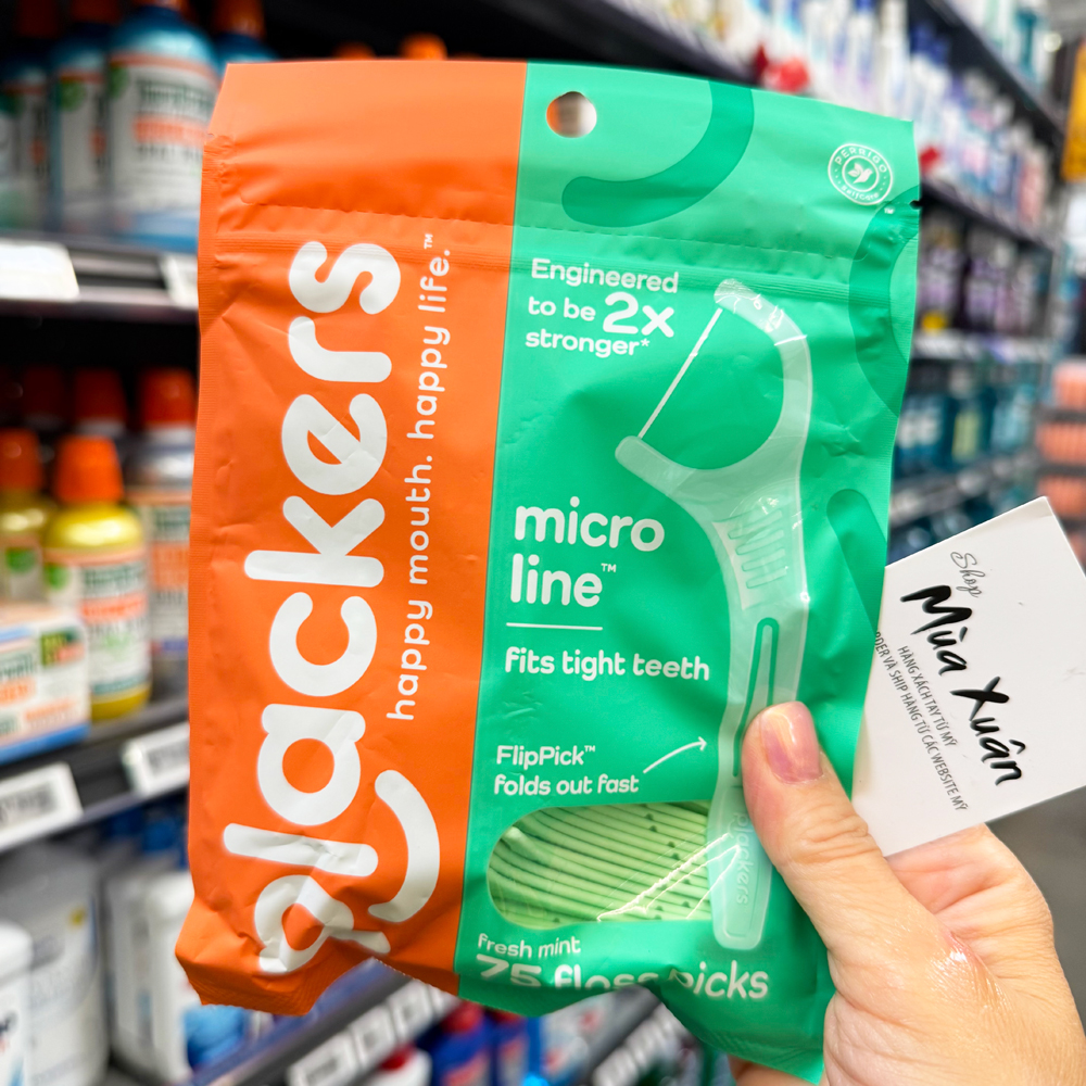 Tăm chỉ nha khoa Plackers Micro Mint với sợi chỉ siêu mỏng và siêu bền dễ dàng tiếp cận những mảng bám và thức ăn dạng hạt tích tụ ở các kẽ răng, nướu răng.