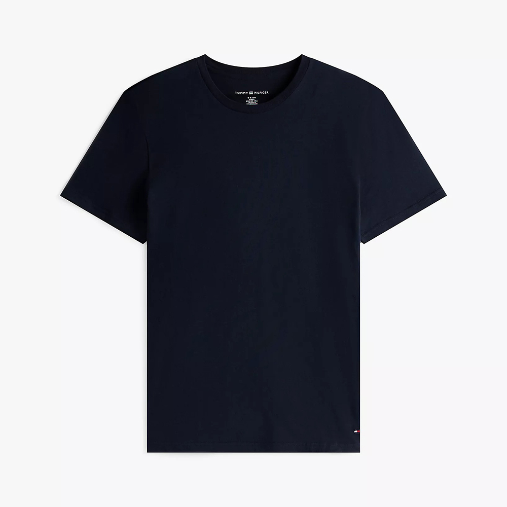 1 Áo thun cổ tròn màu xanh đen, logo cờ hiệu được thêu nổi gần gấu áo.