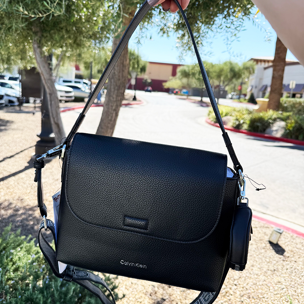 Điểm nhấn thời trang với túi mini có logo Calvin Klein bên ngoài, có thể tháo rời.