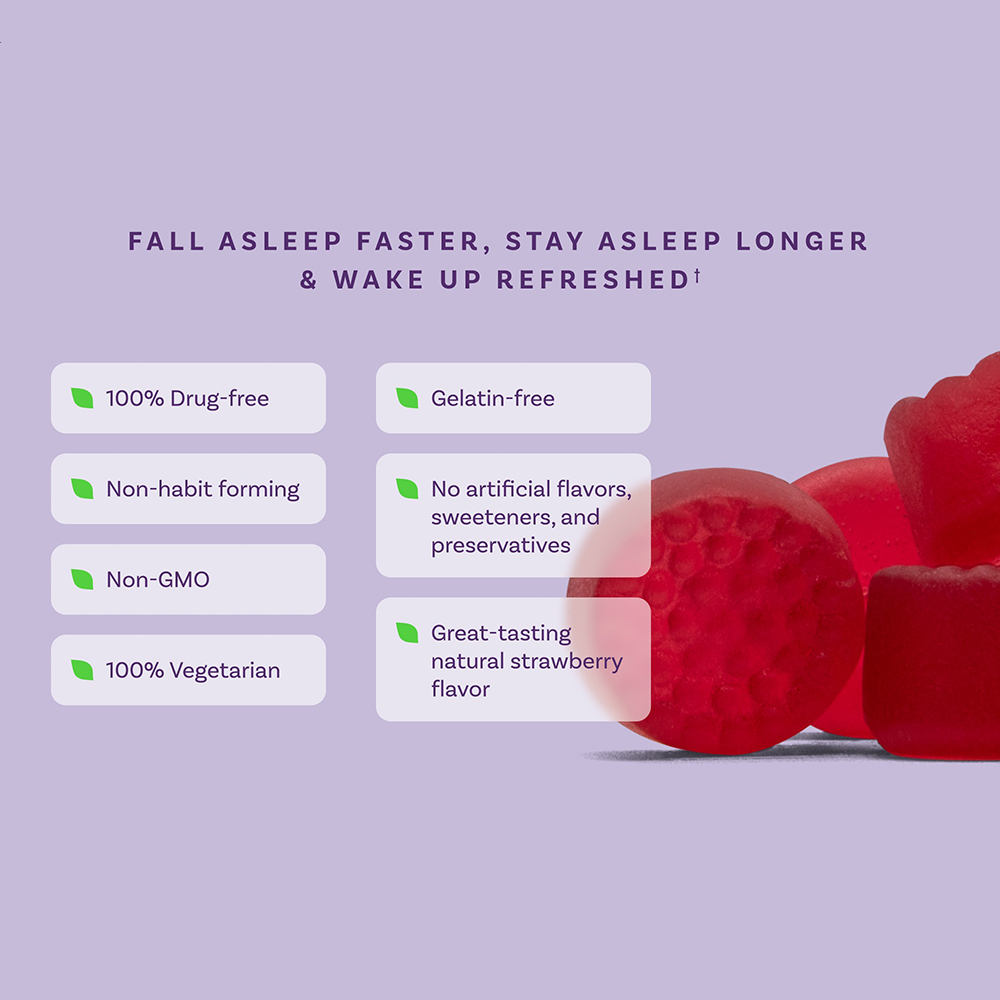 Viên dẻo Melatomin thành phần chứa 10mg Melatonin mang đến giấc ngủ ngon, sâu hoàn toàn tự nhiên, không mang bản chất an thần, không gây lệ thuộc thuốc và an toàn cho người sử dụng.