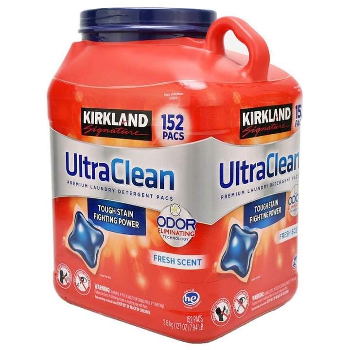 Viên giặt tẩy rửa cao cấp siêu sạch Kirkland với công thức kết hợp 2 trong 1: giặt và khử mùi.