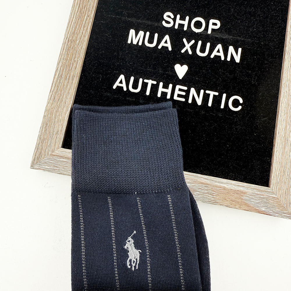 • 1 đôi màu xanh đen kẻ sọc và logo pony thêu nổi màu xám.